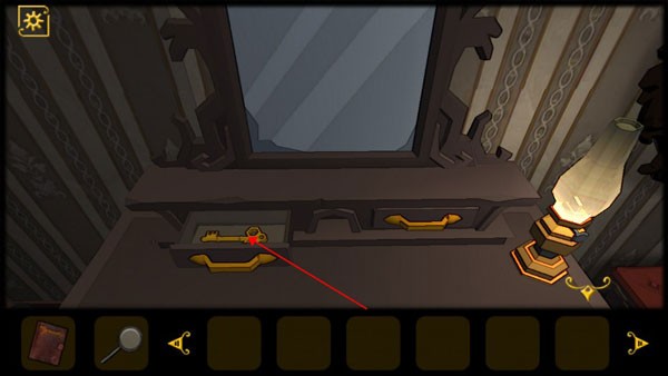 1、在镜子下方的抽屉里获得钥匙,用钥匙打开房门,点击沙发查看信件