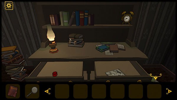 2、打开抽屉获得红色机关石头和查看报纸,注意钟表上红色指针指向的数字VIII