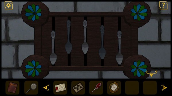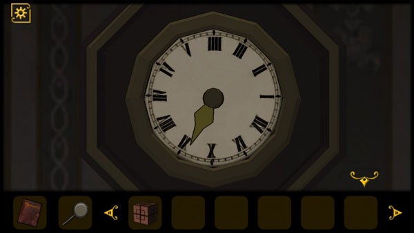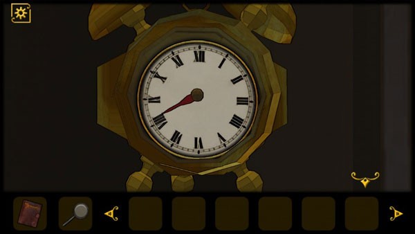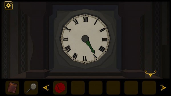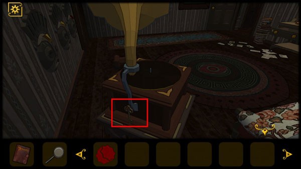 4、在留声机的背后获得房门钥匙,打开房门去往下一个房间,入眼即可看到一个钟表,绿色指针指向V