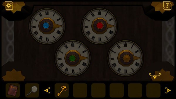 3、查看墙上的钟表谜题,需要集齐四个对应颜色的钟表才能解开