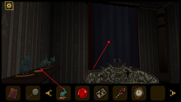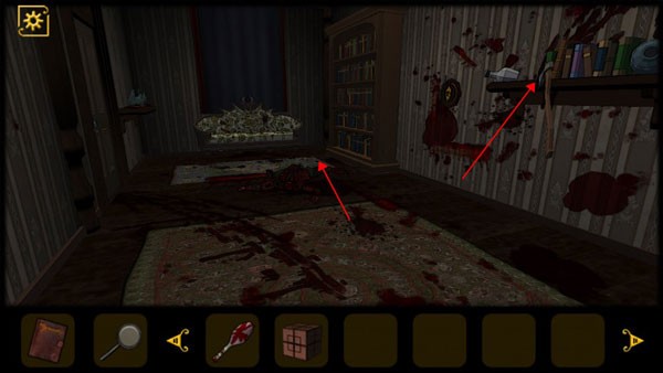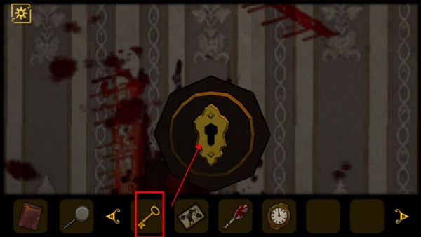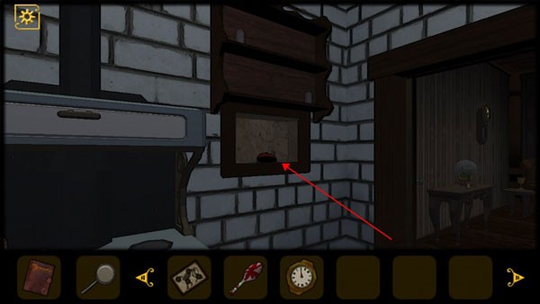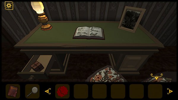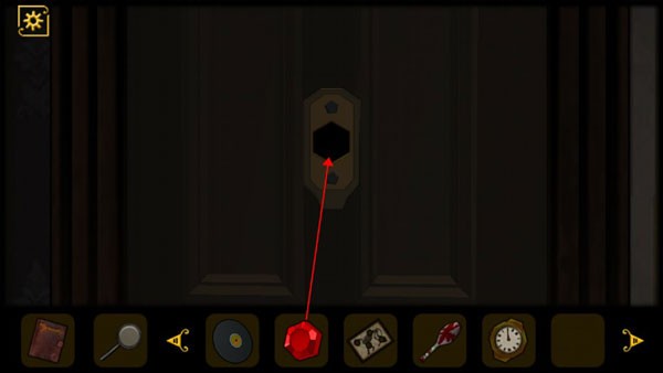 5、查看桌子抽屉,获得道具和查看日记,将红色机关石放入墙上的红色凹槽中,回头会发现进门处出现一只怪物,将门关上,注意门上的花纹
