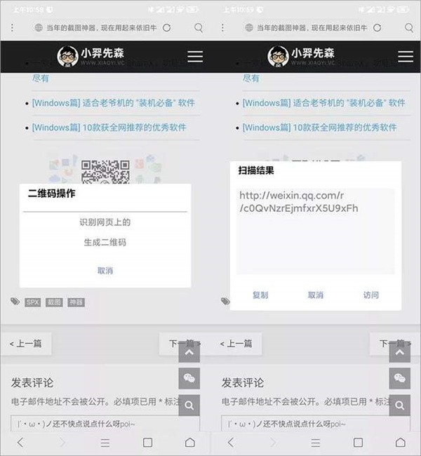 通常我们在手机网页上看到需要二维码识别,可能需要把二维码保存后,通过其它二维码识别软件来识别,而现在「米侠浏览器」只需要长按就能直接识别了,很方便。