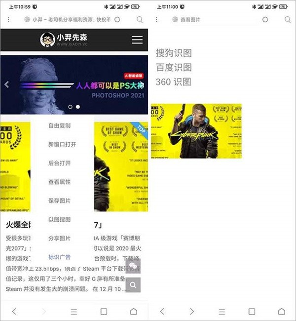 有时候看到不错的图,想找更多相关的图片或者大图,可以通过搜索引擎的以图搜图功能。通常情况下,需要下载图片,再打开搜索引擎来搜索,现在长按图片就可以直接搜索了,默认自带了搜狗识图、百度识图、360识图。