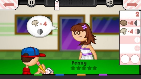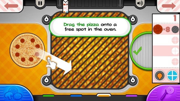 玩家在根据顾客所需的时间烘烤披萨。顾客可以选择将披萨煮到计时器刻度盘上的不同点。当披萨烤好后,玩家点击它可以将其移动到下一站。