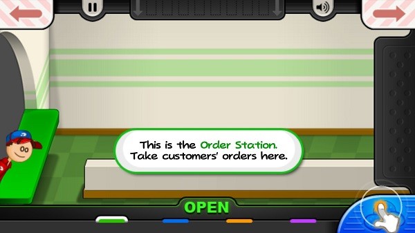 顾客将前往屏幕左侧的订单柜台。当玩家准备好接受顾客的订单时,会出现一个屏幕,显示工作人员正在接受顾客的订单。服务员角色的工人会从餐厅接受订单。在有送货电话的游戏中,屏幕左下角的电话会响起;接听电话后,显示担任司机角色的工作人员正在餐厅办公室接听电话。他们会记下左侧顾客所订购的商品。