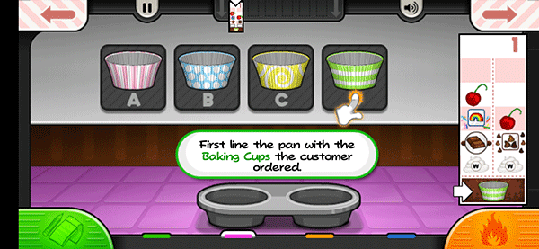 1、进入老爹蛋糕店游戏后,首先接收客户的订单,然后切换到面糊点开始打开纸杯蛋糕