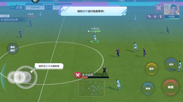 2、传球解析:根据操纵杆控制角色移动,点击传球进行;
