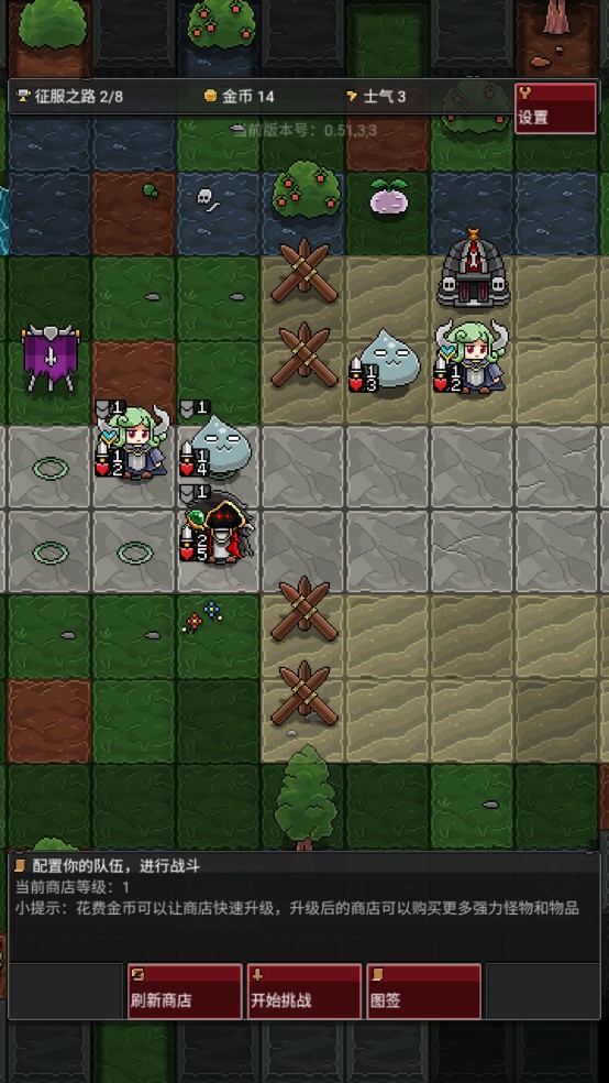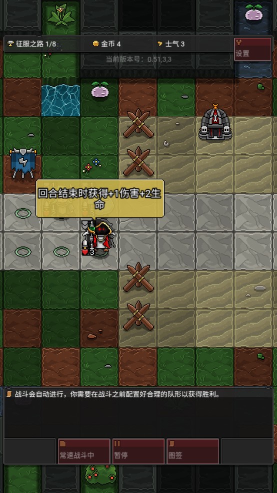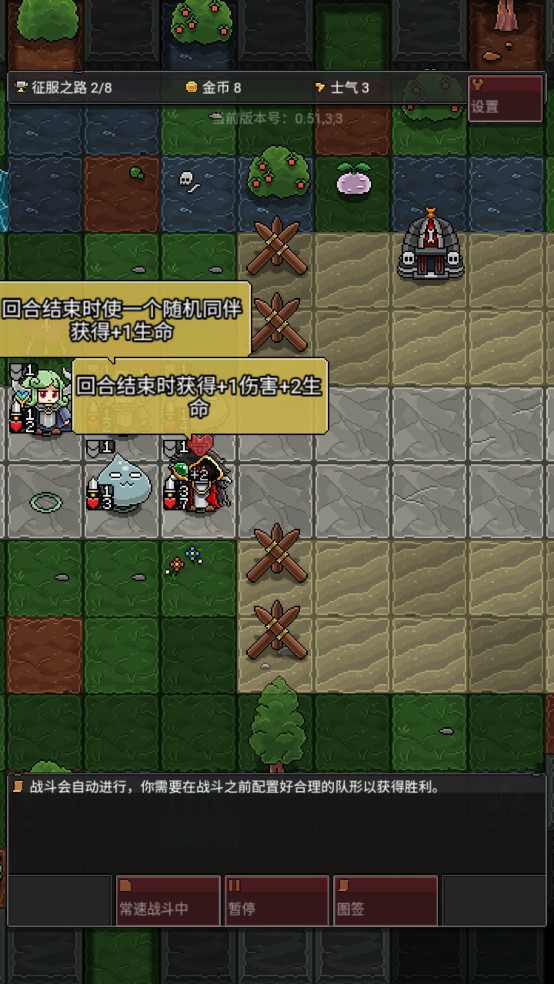 战斗会自动进行,你需要在战斗之前配置好合理的队形以获得胜利