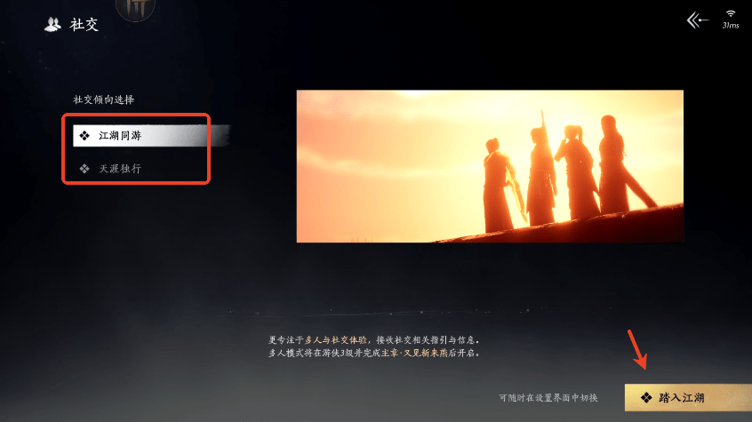 8、选择社交倾向,点击“踏入江湖”;