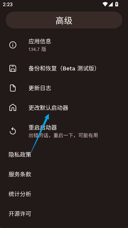4、选择更改默认启动器