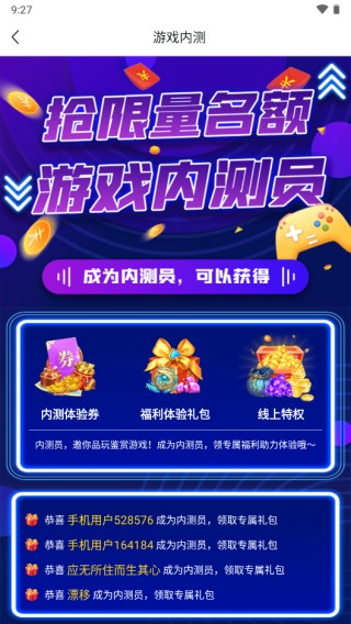 2、在首页界面下划找到“内测名额抢先领”