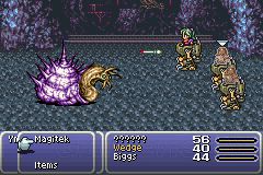 如果少女没有被打成战斗不能的话,可以使用魔导甲攻击的最后一个选项,导弹攻击,一次可以打击头部大约400多一点的HP,BOSS总共HP是1600,所以基本上三四轮打击过后就结束了。消灭蜗牛后进入矿井,发现幻兽之后神秘少女跟幻兽产生了共鸣,维奇和比克斯受不了这巨大的共鸣而被无情地消灭,神秘少女随即也昏了过去……