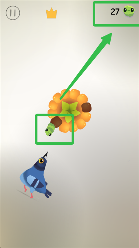 1、进入Pigeon Pop疯狂的鸽子游戏,点击啄食正常颜色的玉米粒,避开坏掉的玉米粒。