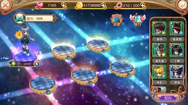 点击主界面右下角【阵容】按钮,你可以打开阵容界面,界面中显示了六个位置,也即是可以上场最多六个角色哦