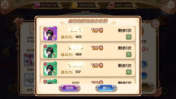 PS:如果阵容位置没有站满,将自动开启【助战系统】,选择小伙伴为你助战吧