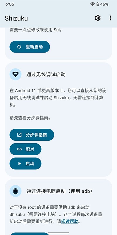 通过无线调试启动适用于 Android 11 或以上版本。这种启动方式无需连接电脑。由于系统限制,每次重新启动后都需要再次进行启动步骤。