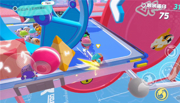 5、他们被困在了岩土怪的上面,玩家需要点碎岩土块,让蛋仔们安全的落到地面上,还要同时注意每个蛋仔的特点。