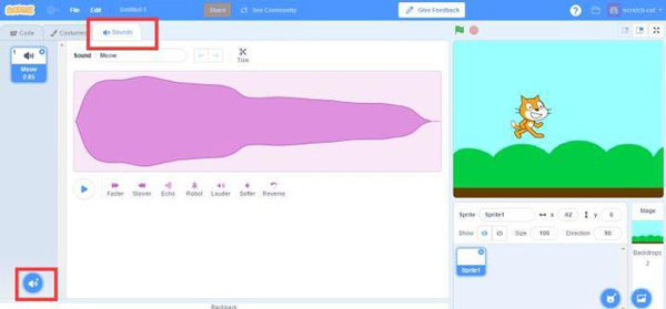 1、在积木区,点击【Sounds】选项卡,点击【选择声音】;