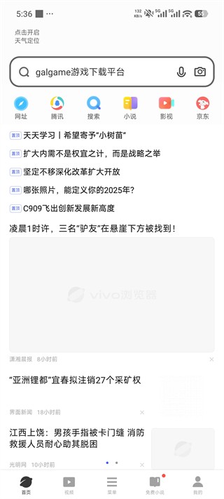 1、打开vivo浏览器App,搜索你想收藏的网址