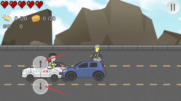 2、通过操控2个上下的按钮来达成躲避迎面袭来的物体。