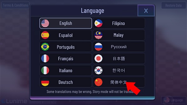 1、下载并打开加查咖啡厅,来到游戏主界面后,点击右下角的Language选项