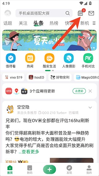 2、然后我们就可以进入到酷安应用市场app的首页界面了,首页会向用户推荐一些最新的热门应用游戏