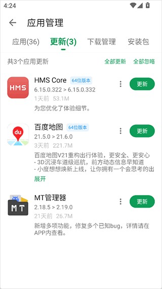 5、同时app中和普通的应用市场一样也有自动检测用户手机已安装的应用,如有更新会提示用户更新,还有应用的卸载管理操作