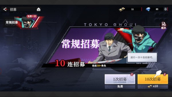 4、积攒到足够资源后就能进行招募,抽取喜欢的角色。