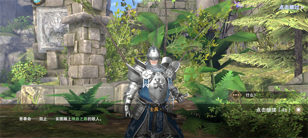 5、然后在任务途中敌人,开启对话,点击跳过;