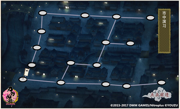 无等级限制,和【基本演习】相比,难度上升。在该合战场战斗模式为市中夜战,故马匹的加成无效,并且由于是夜战,短刀和胁差的能力将得到提升。