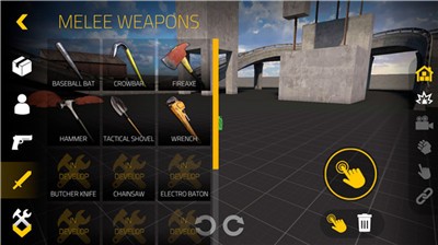 2、进入沙盒世界,通过左右两侧的虚拟键位,控制人物移动、跳跃、蹲下、射击等。