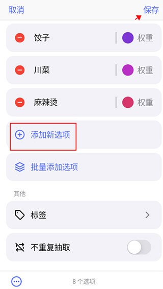 4、点击添加新选项,可以新增转盘里的内容。不满意可以点击左边的红杠删除选项。