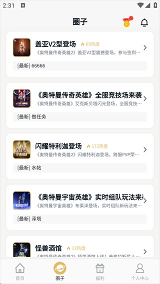 提供福利的板块,用户可以在这里完成各类任务,获取相应奖励,同时也能挑选、兑换游戏礼包,助力在奥特曼相关游戏中更好地体验。