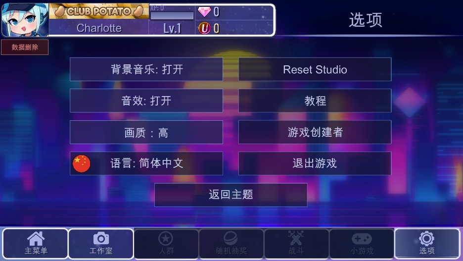7、点开选项,还支持对背景音乐、音效、画质等进行修改。