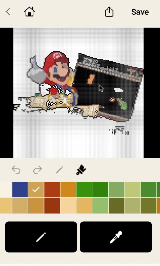 1、支持拍照和相册导入,能一键把普通图片变成像素画,还能自由填色玩创作。
