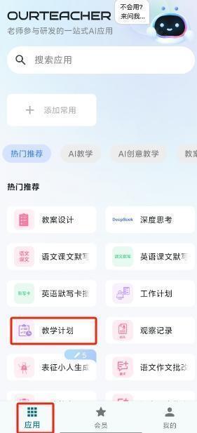 1、利用手机号登录进入“应用”页面,找到页面上的“教学计划”