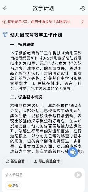 3、点击“一键生成”,稍作等待便会生成教学计划