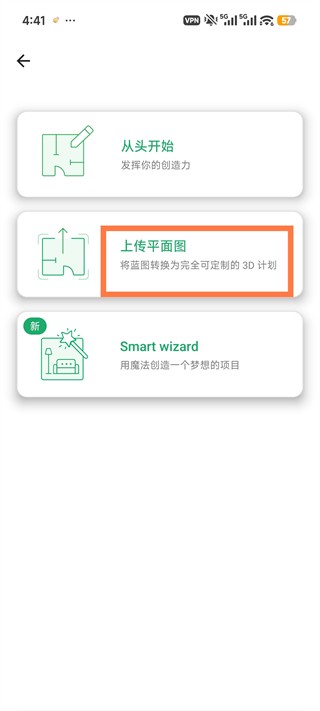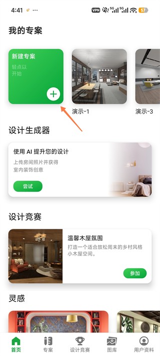 1、进入Planner 5D App 首页,点击 “我的专案” 模块下的 “新建专案”;
