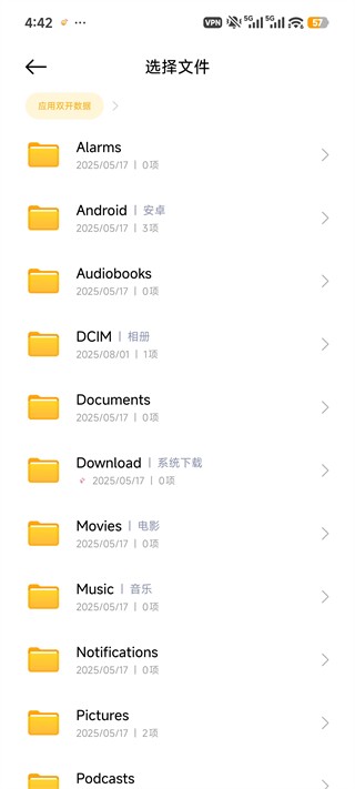 4、在文件选择界面,从设备文件夹(如 DCIM、Pictures)中选择图纸文件;
