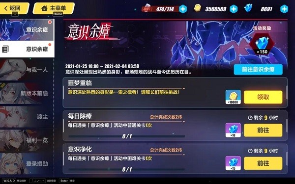 每日任务必做,下排的使命值通过日常可以做满150点,奖励共40水晶,每天刷新。剧情任务按照指引完成即可,早晚都要做完。作战任务和作战奖励都是大月卡相关,在后续攻略中详述。