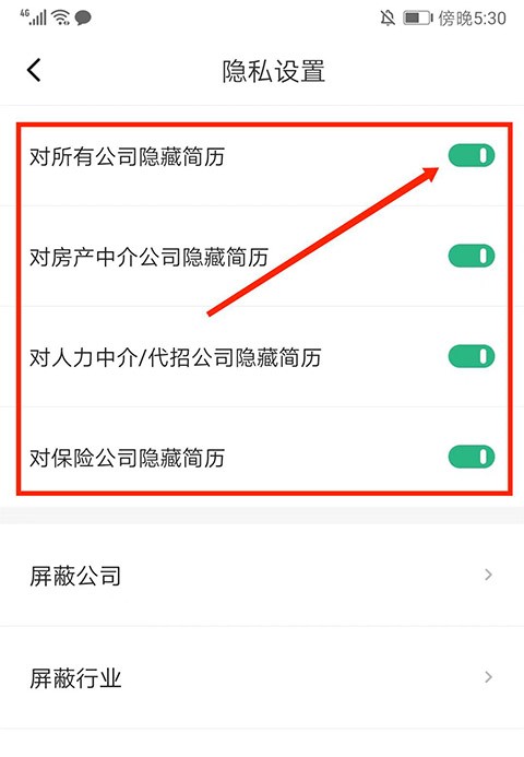 3、打开下列选项即可隐藏简历