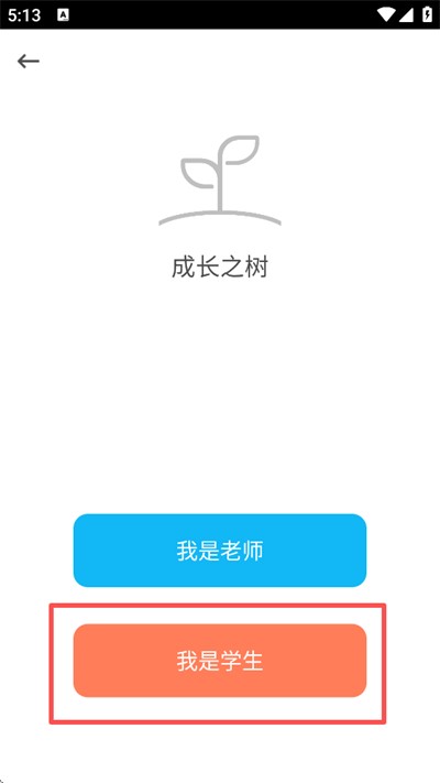 1、打开 APP 后,在身份选择页,点击橙色的"我是学生"按钮,进入学生端界面;