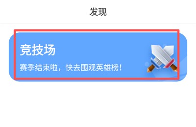 2、在"发现"页,点击蓝色的 "竞技场"卡片,进入竞技学习界面;