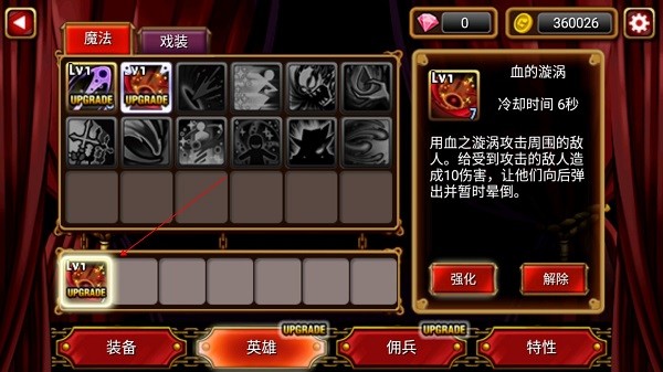3、如何装备魔法,打开点击英雄,在英雄界面中,点击魔法,在魔法界面中,点击需要装备的魔法,在魔法禁书中,点击装备后该魔法出现在下方技能栏中就说明装备完成啦;