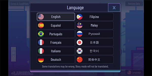1、在本站下载并安装游戏,来到下方主界面后点击右下角的语言设置选项