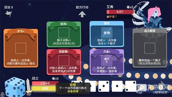 -特性:女巫的特性比较复杂,玩家可以选择将获得的装备放在魔法书的不同点数中,在战斗中要先掷出装备对应的点数才能使用这件装备,也可以随时通过掷出别的点数来更换。