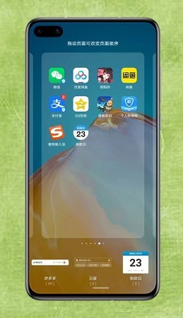 1、首先打开手机桌面控制界面,用手指按住屏幕分别往不同的方向滑动;