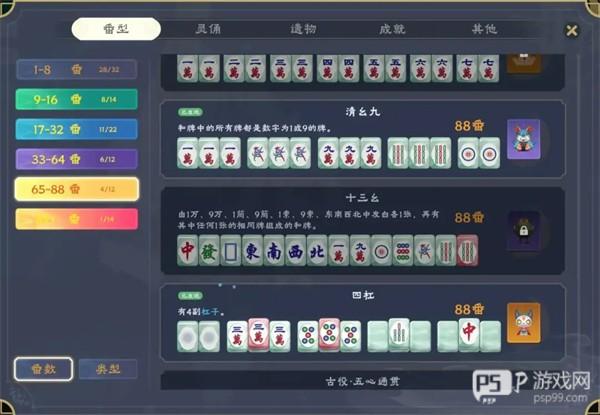 番数:你胡牌时达成的番型分值总和,越好的番型番数越高(比如“清一色”+“金钩钓”的番数相加,当然也可以靠灵佣等直接提高番数)。