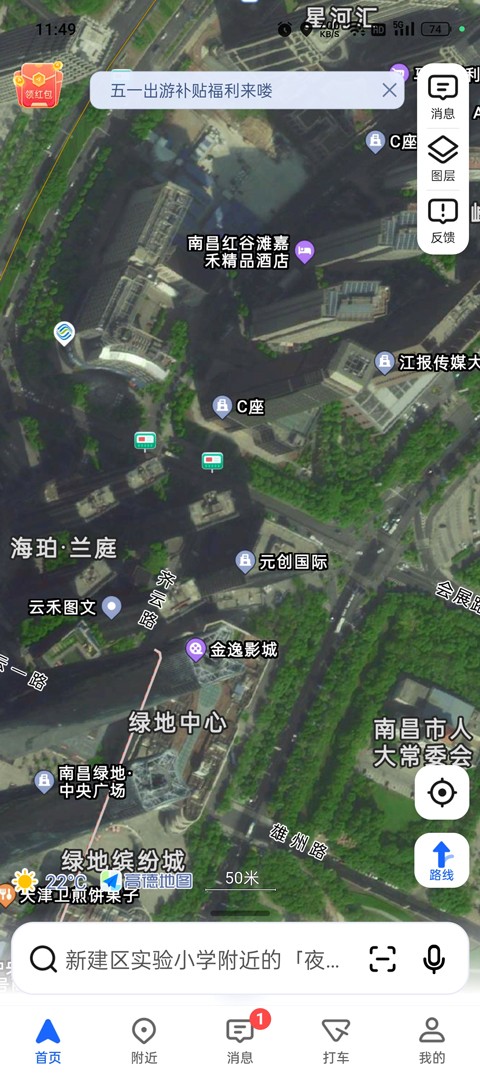 3.实景地图:高德地图提供实景地图功能,用户可通过街景图像真实感受目的地周围的环境,更好地辨别地点和方向。