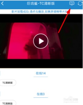 进入播放页面后,右上角有个电视图标,“切换线路”旁边的,点击一下;